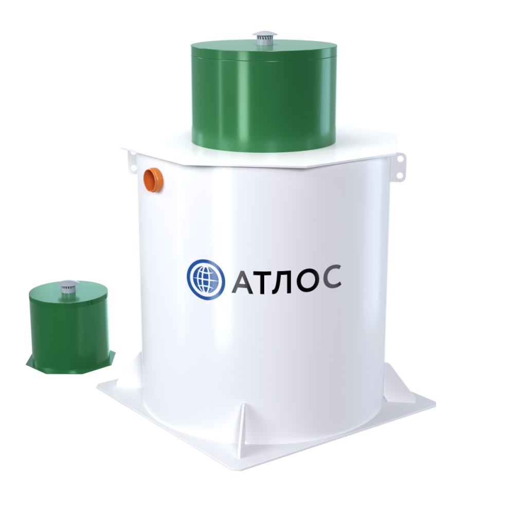 Базовое водоотведение у Атлос 10 — комбинированное. Насос для принудительного отвода приобретается отдельно, площадка под него есть в базе. Компрессор вынесен из корпуса. По монтажу модель подходит для высокого УГВ с оговорками: высота корпуса 1850 мм делает её допустимой, но не идеальной для сложных участков. Глубина входа составляет 510 мм в базе и до 1410 мм с увеличением. Аварийная сигнализация уровня доступна как опция, дополнительного обеззараживания у станции нет. Обслуживание — простое.