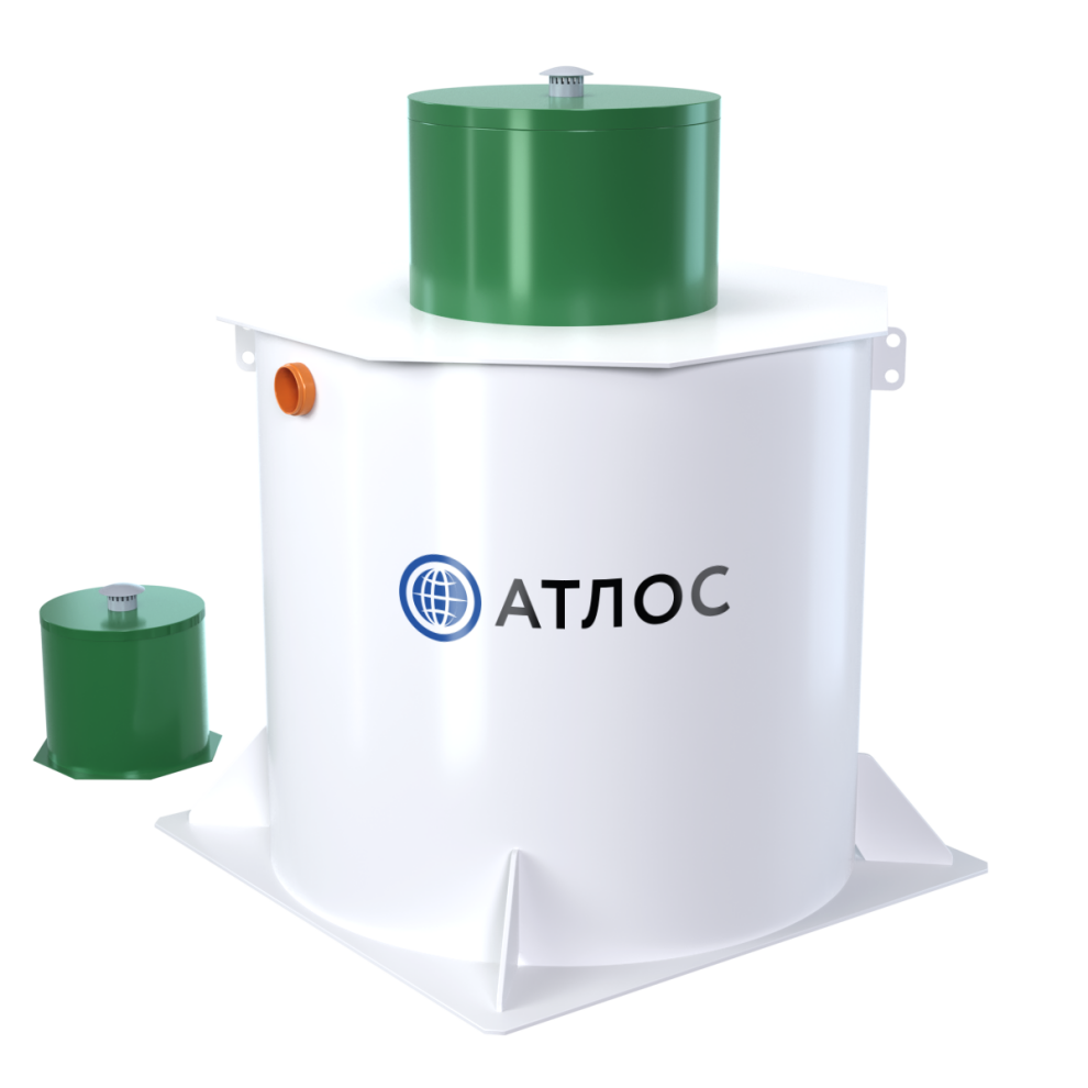 Базово Атлос 12 имеет комбинированное водоотведение. Насос для принудительного отвода в комплект не входит и приобретается отдельно, площадка под него предусмотрена сразу. Компрессор вынесен из корпуса. По монтажу модель подходит для высокого УГВ с оговорками: базовая высота 1850 мм остаётся умеренной, но итоговую схему всё равно нужно оценивать вместе с участком. Глубина входа — 510 мм в базе и до 1410 мм максимально. Аварийная сигнализация уровня доступна как опция, дополнительных вариантов обеззараживания у модели нет. Обслуживание — простое.