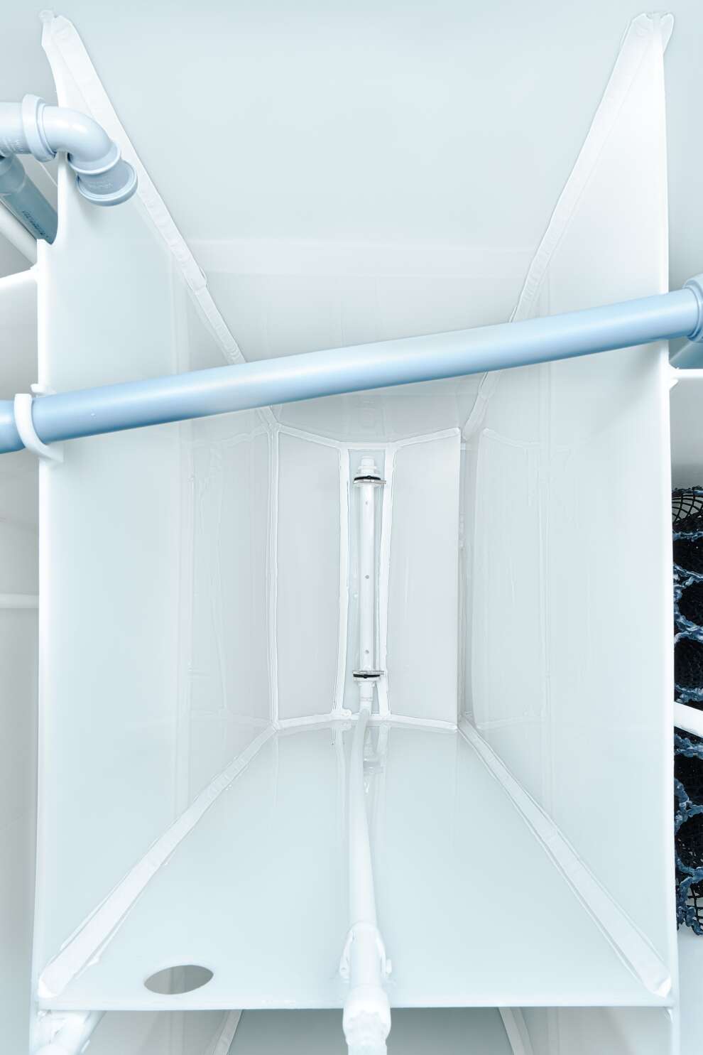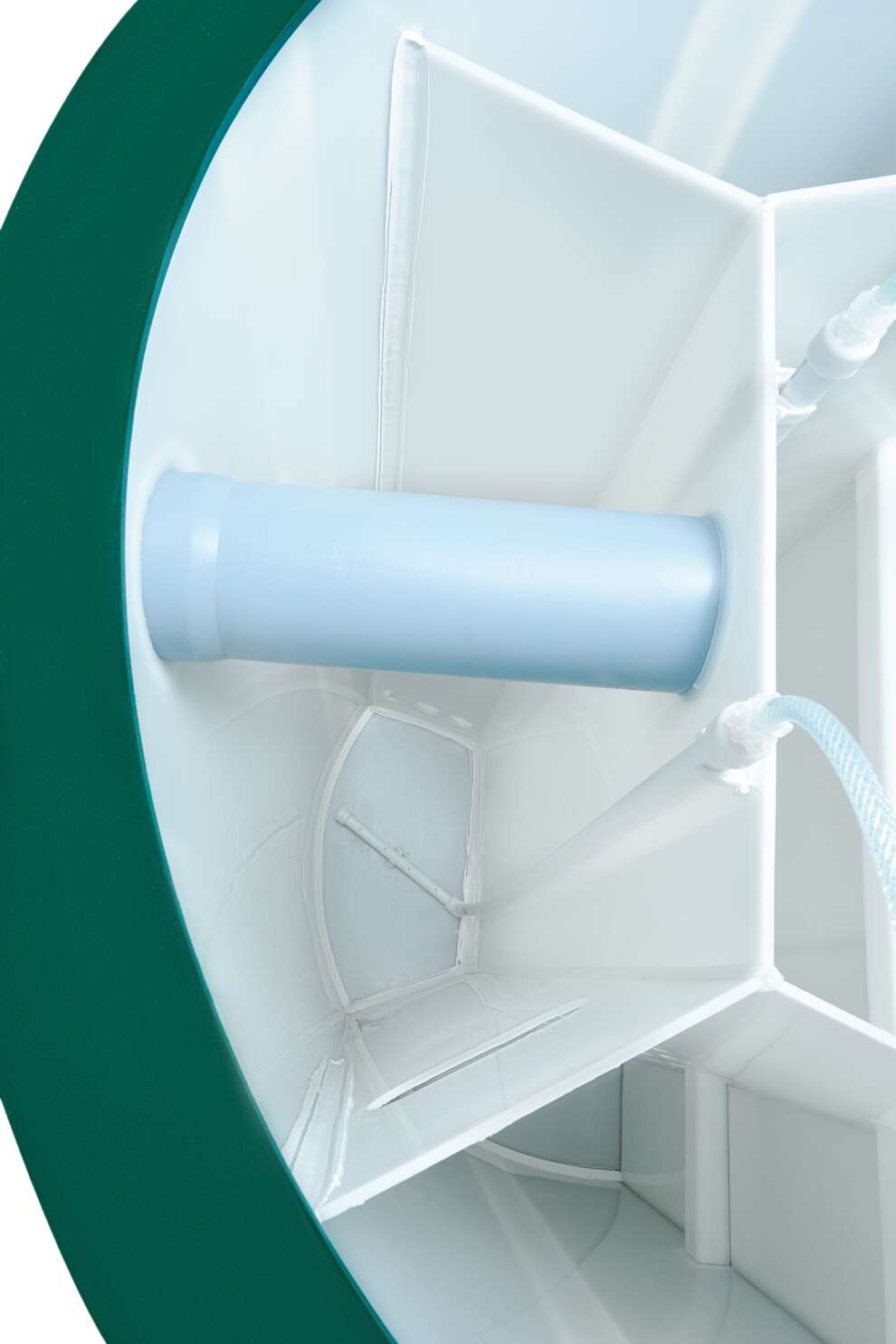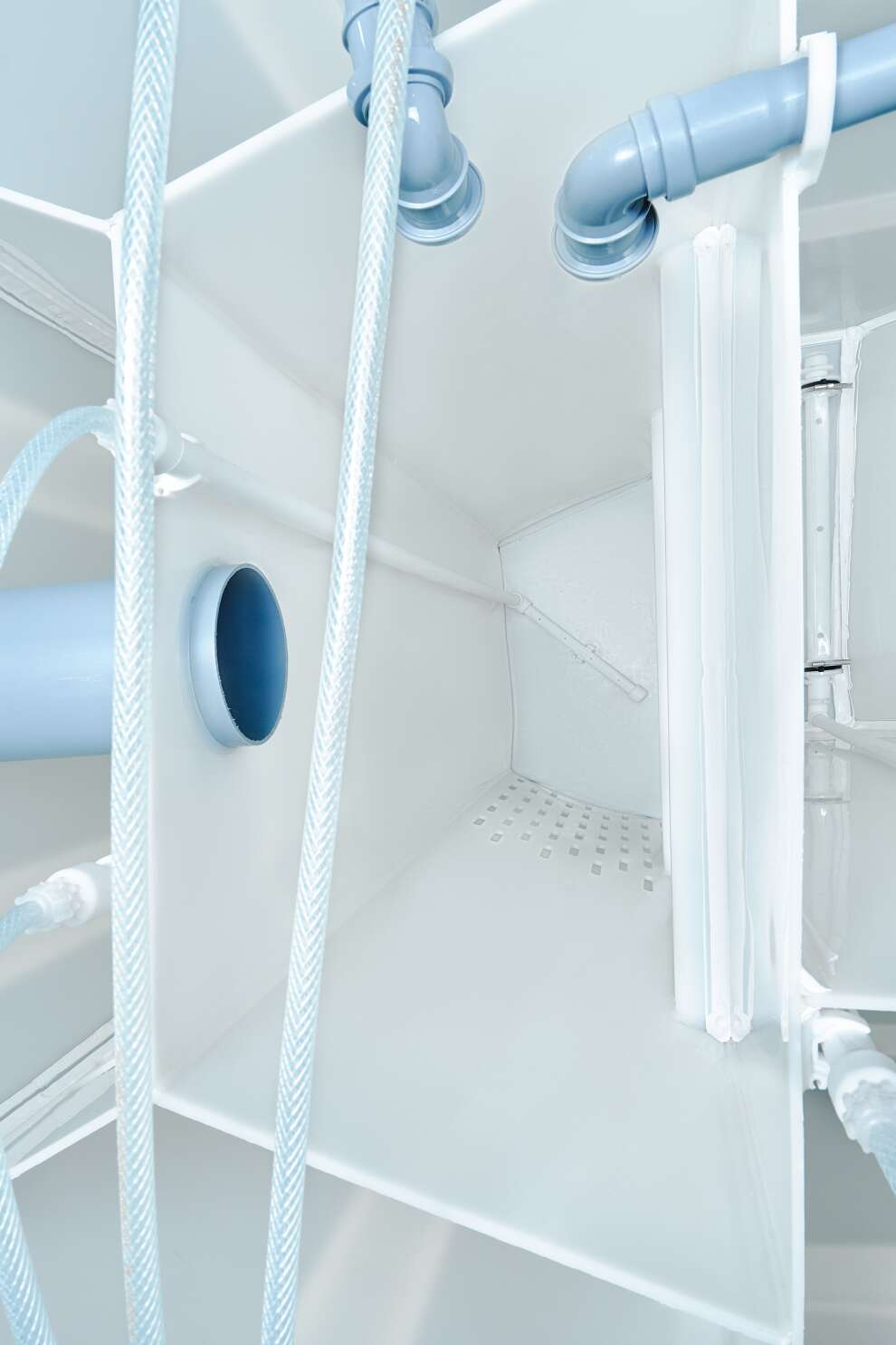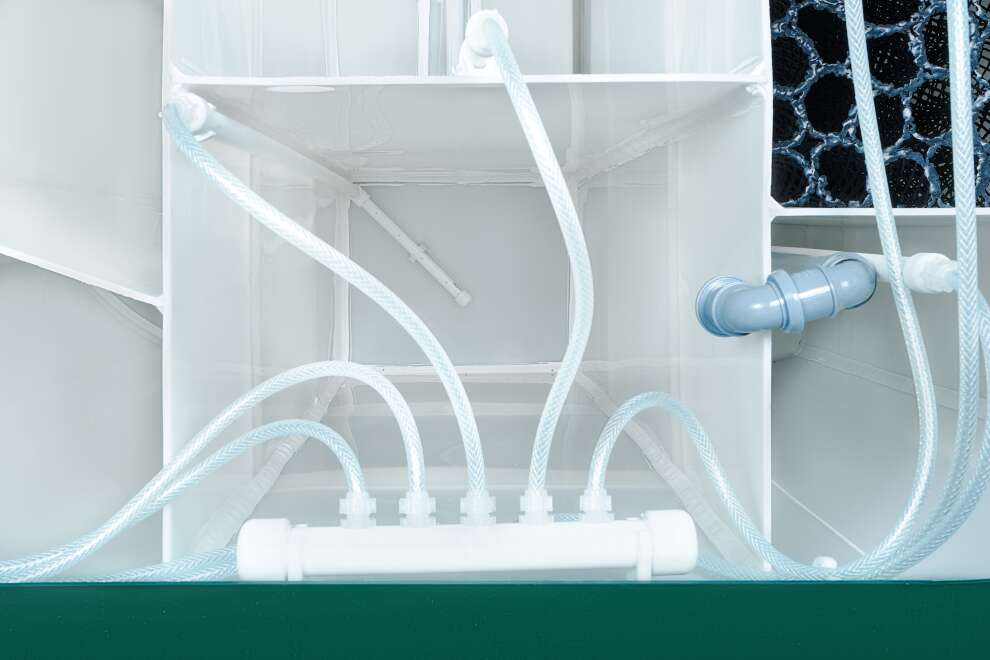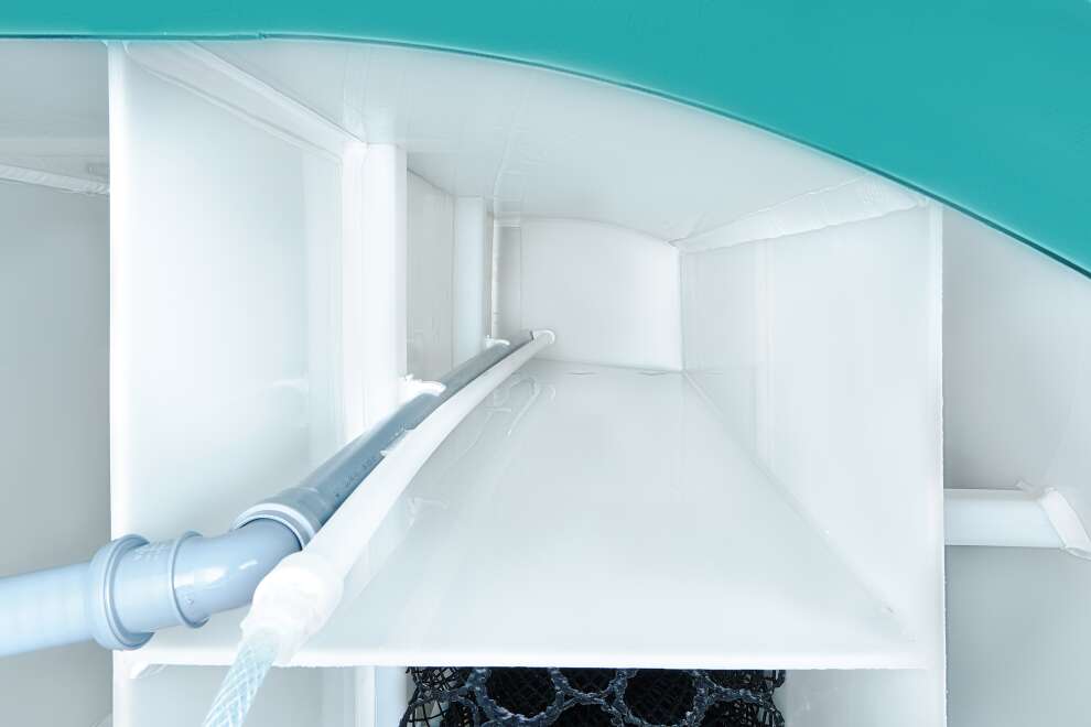 В конструкции задействованы крупнопузырчатые мешалки в аноксидных камерах, мелкопузырчатый аэратор в аэробном биореакторе и отдельная аноксидная биозона. Биозагрузки здесь много: FBC-structured используется и в аэробном, и в аноксидном биореакторе. Именно поэтому станция выгодно отличается высокой устойчивостью к бытовой химии по меркам бытовых СБО. Базовое водоотведение — комбинированное, площадка под насос предусмотрена, но сам насос для принудительного сброса покупается отдельно. При высоте корпуса 1399 мм модель подходит для монтажа при высоком УГВ, что делает её особенно интересной для сложных участков. Компрессор вынесен из корпуса, доступны доборы 100, 250 и 500 мм, а также опции аварийной сигнализации и хлорного обеззараживания. Обслуживание у станции сложное, но сама конструкция рассчитана на серьёзный и стабильный режим работы.