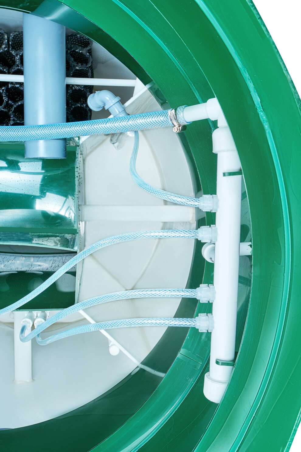 С инженерной точки зрения PRO 15 сохраняет общую философию серии: септическая часть, компрессорная доочистка и большое количество FBC-structured загрузки. Такая схема делает модель приспособленной к постоянному интенсивному режиму работы и помогает не сводить всю очистку только к компрессорному блоку. Именно за счёт этого станция выглядит более уместной на больших объектах, где вода расходуется активно и неравномерно, а система должна оставаться стабильной без постоянной работы “на пределе”.