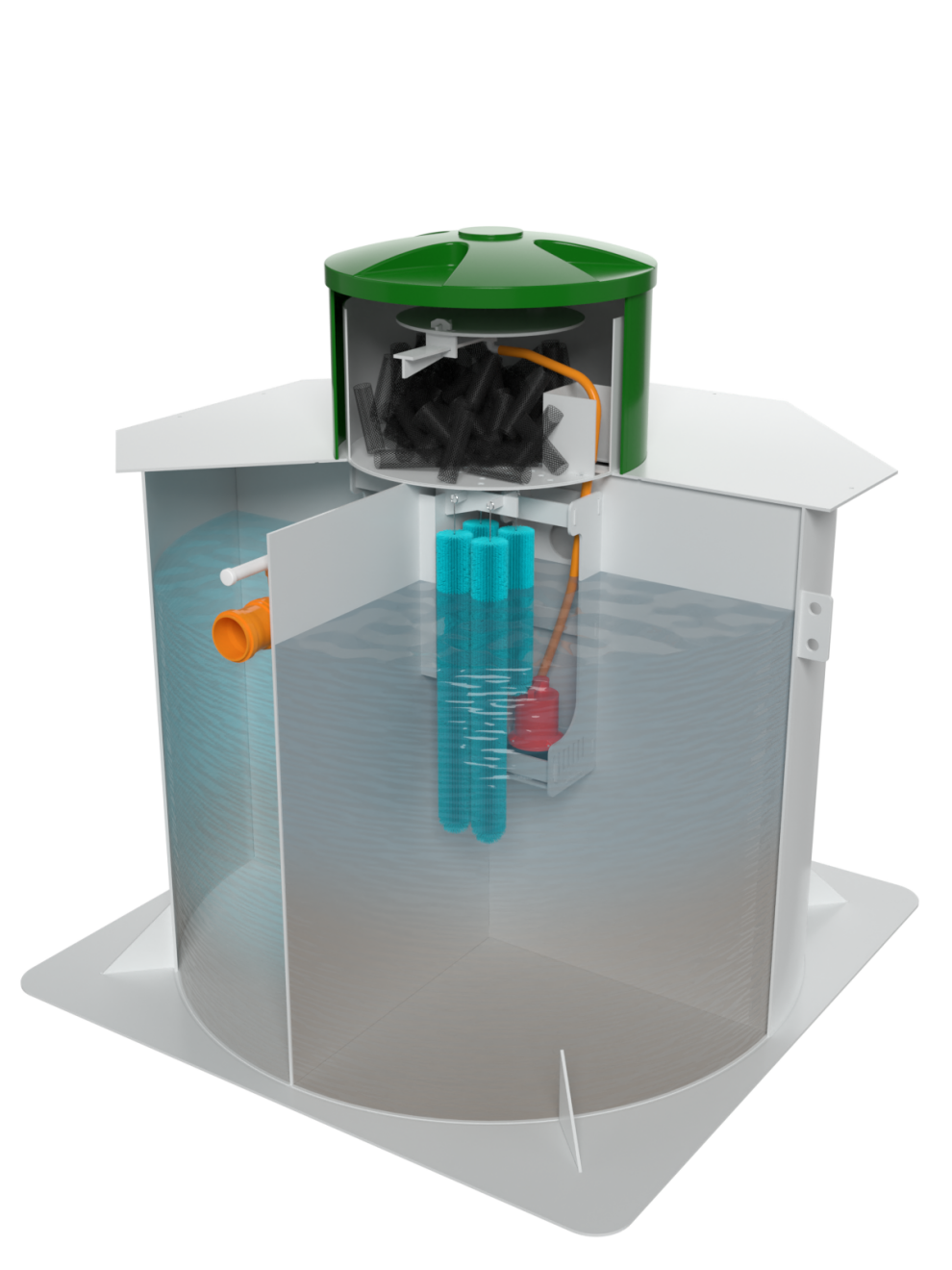 По конструкции Далос 15 сохраняет ту же инженерную логику, что и младшие модели: септическая часть и компрессорная доочистка с аноксидной, аэробной и анаэробной зонами и рециркуляцией. Биозагрузка в станции отсутствует, за счёт чего схема остаётся простой и понятной, но это же означает, что устойчивость к бытовой химии остаётся невысокой. При спокойном бытовом режиме станция работает адекватно, но под постоянную химическую перегрузку или под длительные простои её рассматривать не стоит. Устойчивость к режиму “выходного дня” у модели также низкая.