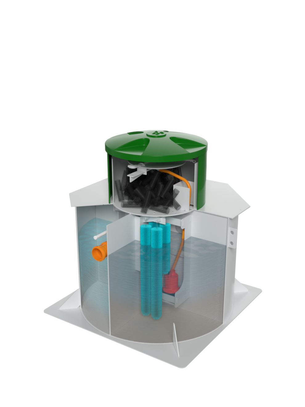 Конструктивно Далос 3 НК сохраняет общую схему линейки: септическая часть сочетается с компрессорной доочисткой, а сток проходит через аноксидную, аэробную и анаэробную зоны с рециркуляцией. Биозагрузка в конструкции отсутствует, поэтому станция остаётся сравнительно простой по устройству и обслуживанию. Но такая схема делает её чувствительной к агрессивной бытовой химии и к длительным простоям. Именно поэтому модель лучше подбирать под нормальный сезонный режим без постоянной химической перегрузки и без сценария редких коротких приездов.