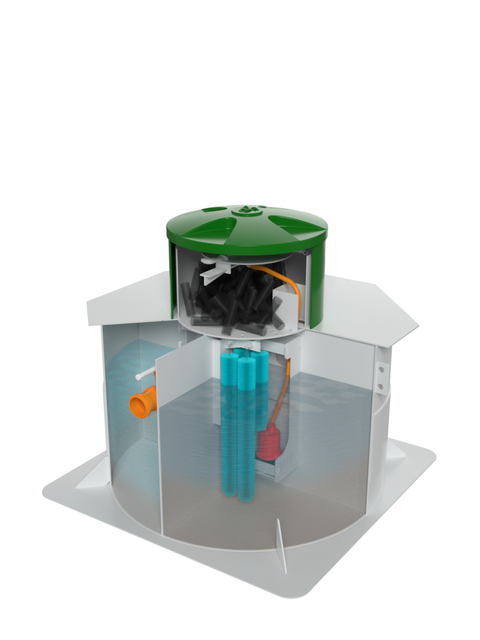 Далос 5 НК — гибридная станция биологической очистки для дома со стандартной семейной нагрузкой, выполненная в исполнении с низким корпусом. По рабочей нагрузке это решение для 4–5 пользователей: кухня, санузел, душ или ванна, бытовая техника и обычный семейный расход воды. Версия НК интересна тем, что позволяет использовать логику и объём стандартной модели, но в более удобной по высоте монтажной конфигурации. Это особенно актуально там, где сама геометрия корпуса влияет на пригодность станции под участок.