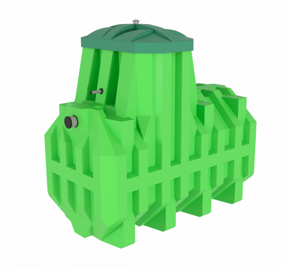По конструкции Эргобокс 10 остаётся типичным представителем серии: септическая часть работает в связке с компрессорной доочисткой, а очистка проходит через анаэробную и аноксидную зоны, затем через аэробную часть, анаэробную камеру и рециркуляцию. Биозагрузка в конструкции отсутствует, а значит, модель остаётся понятной по устройству, но не выигрывает по устойчивости к бытовой химии. Уровень химической устойчивости здесь низкий, поэтому станцию стоит использовать в обычном бытовом режиме без постоянной агрессивной нагрузки по стоку. Корпус выполнен из полиэтилена, из-за чего модель не подходит для высокого УГВ: при таких условиях её монтаж требует дополнительных мер и становится менее рациональным. Базово станция имеет комбинированное водоотведение, насос для принудительного отвода подбирается отдельно, площадка под него предусмотрена в базе. Компрессор установлен внутри корпуса. Аварийная сигнализация уровня доступна как опция, дополнительных вариантов обеззараживания нет. Обслуживание — средней сложности.