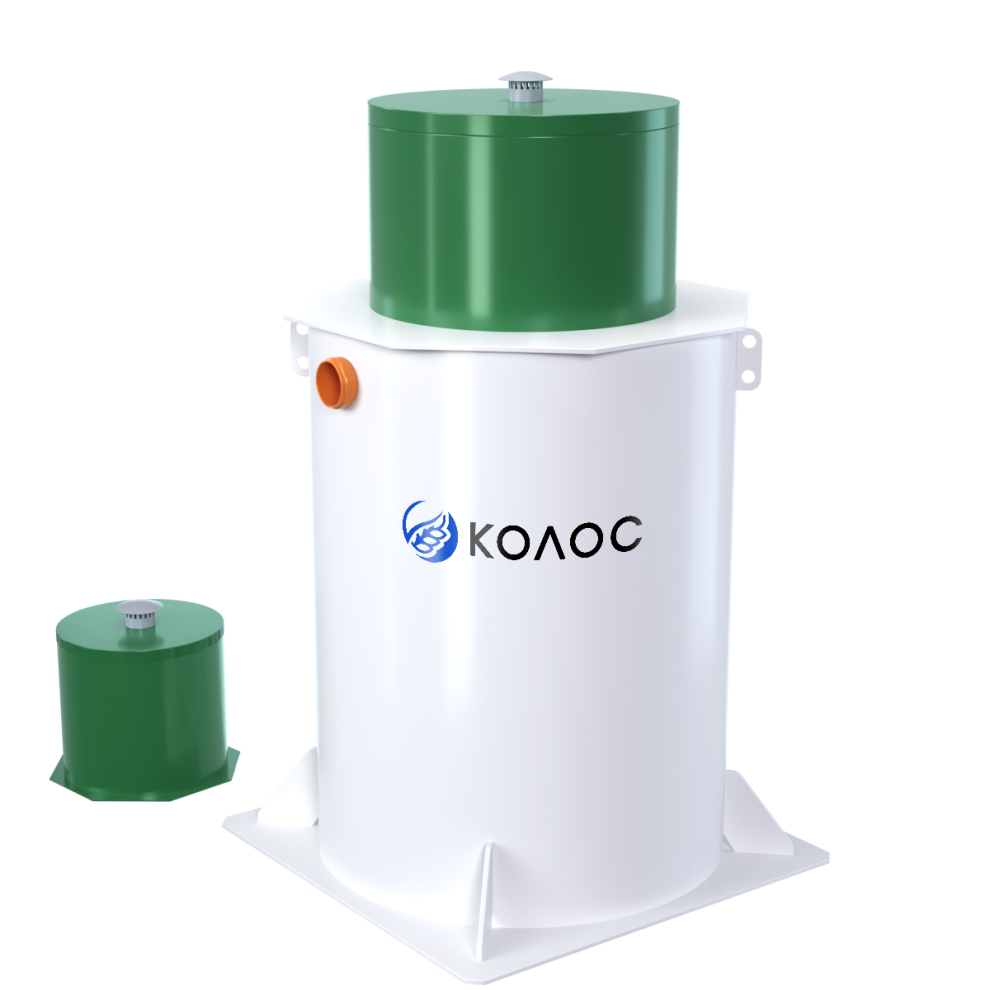 Базово Колос 7 имеет комбинированное водоотведение. Насос для принудительного отвода не входит в комплект и приобретается отдельно, при этом площадка под него уже предусмотрена. Компрессор вынесен из корпуса. По монтажу модель подходит для высокого УГВ с оговорками: высота корпуса 2050 мм требует оценивать участок и схему отвода воды заранее. Глубина входа составляет 710 мм в базе и до 1610 мм максимально. Аварийная сигнализация уровня доступна как опция, дополнительного обеззараживания нет. Обслуживание — простое.