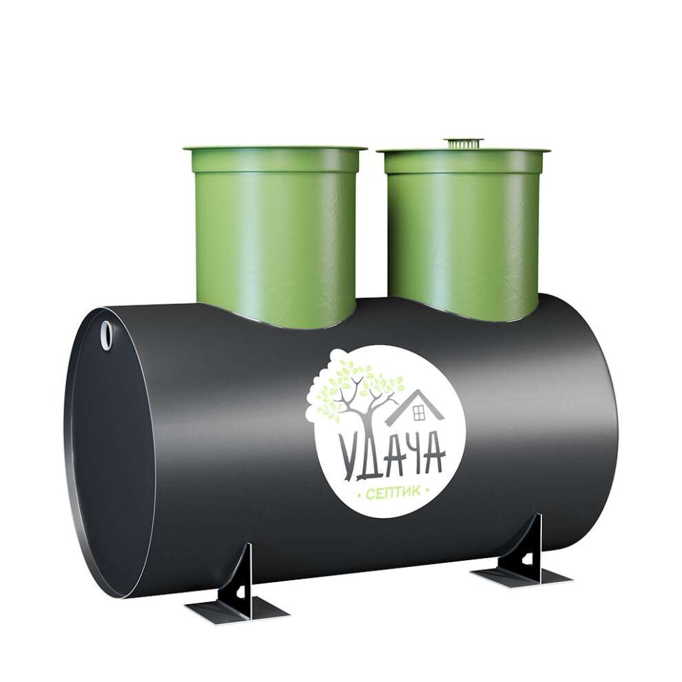 Удача 1 — компактная гибридная станция биологической очистки для небольшого дома или дачи с умеренной бытовой нагрузкой. Модель рассчитана на 1–2 пользователей, имеет производительность 400 л/сут и залповый сброс 130 л, поэтому подходит для объектов, где важны компактность, понятная схема работы и возможность использовать станцию как в сезонном режиме, так и при ПМЖ с ограничениями. Это решение не для тяжёлого постоянного расхода воды, а для спокойного бытового сценария без выраженных перегрузок.
