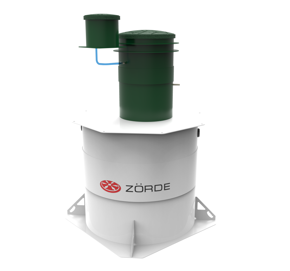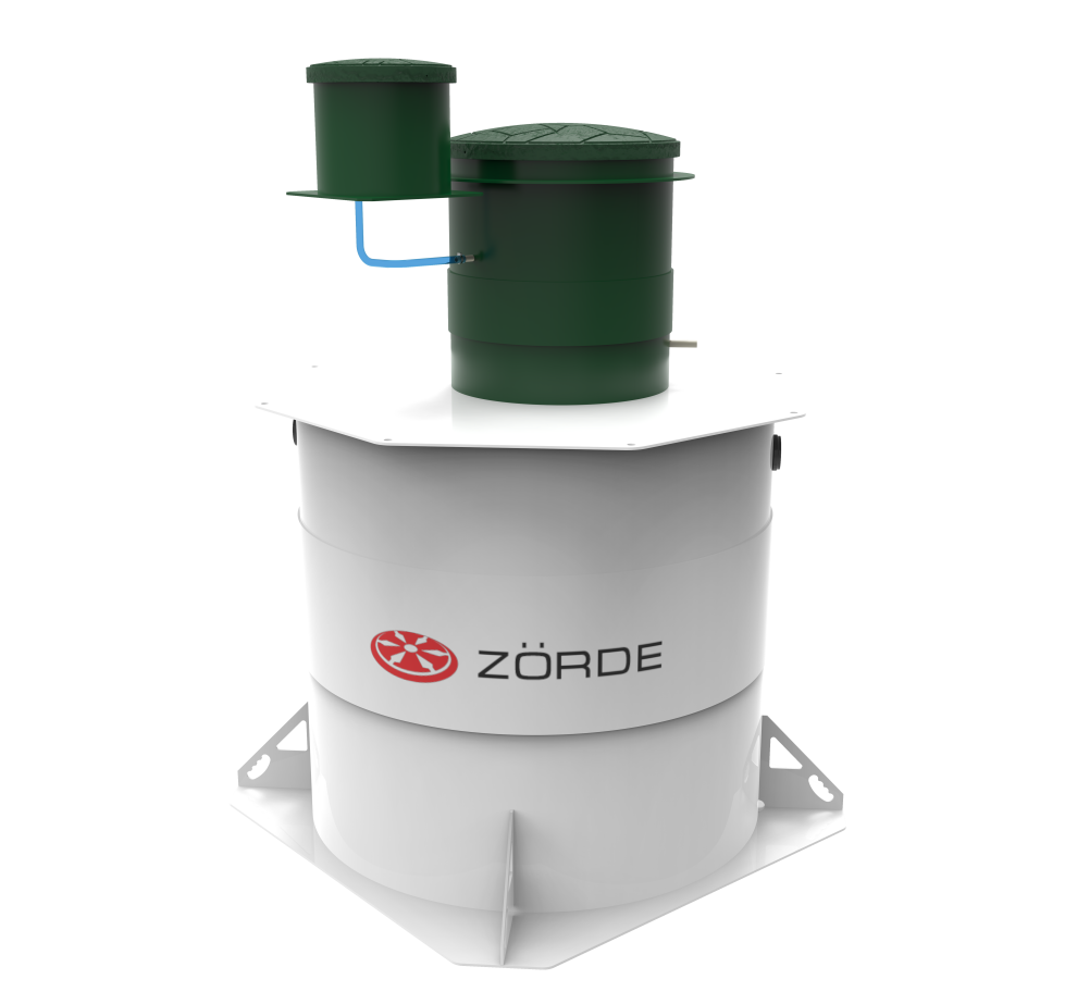 Базово Zörde Rein 10 имеет комбинированное водоотведение. Насос для принудительного отвода в комплект не входит и приобретается отдельно, площадка под него предусмотрена в базе. При высоте корпуса 2081 мм станция подходит для высокого УГВ с оговорками. Базовая глубина входа составляет 600 мм, максимальная — 1200 мм. Компрессор вынесен из корпуса, аварийная сигнализация уровня доступна как опция, дополнительных вариантов обеззараживания нет. Обслуживание — средней сложности.