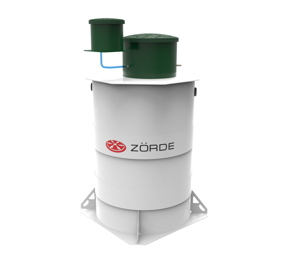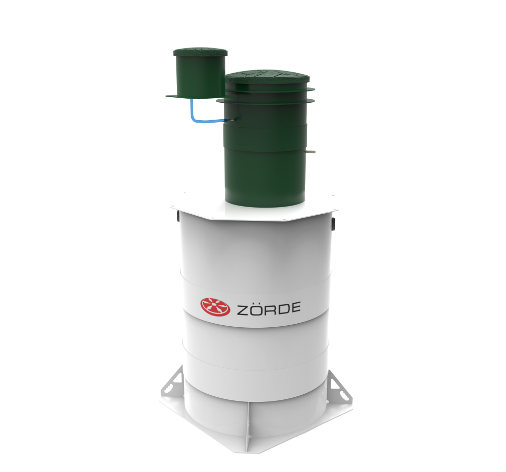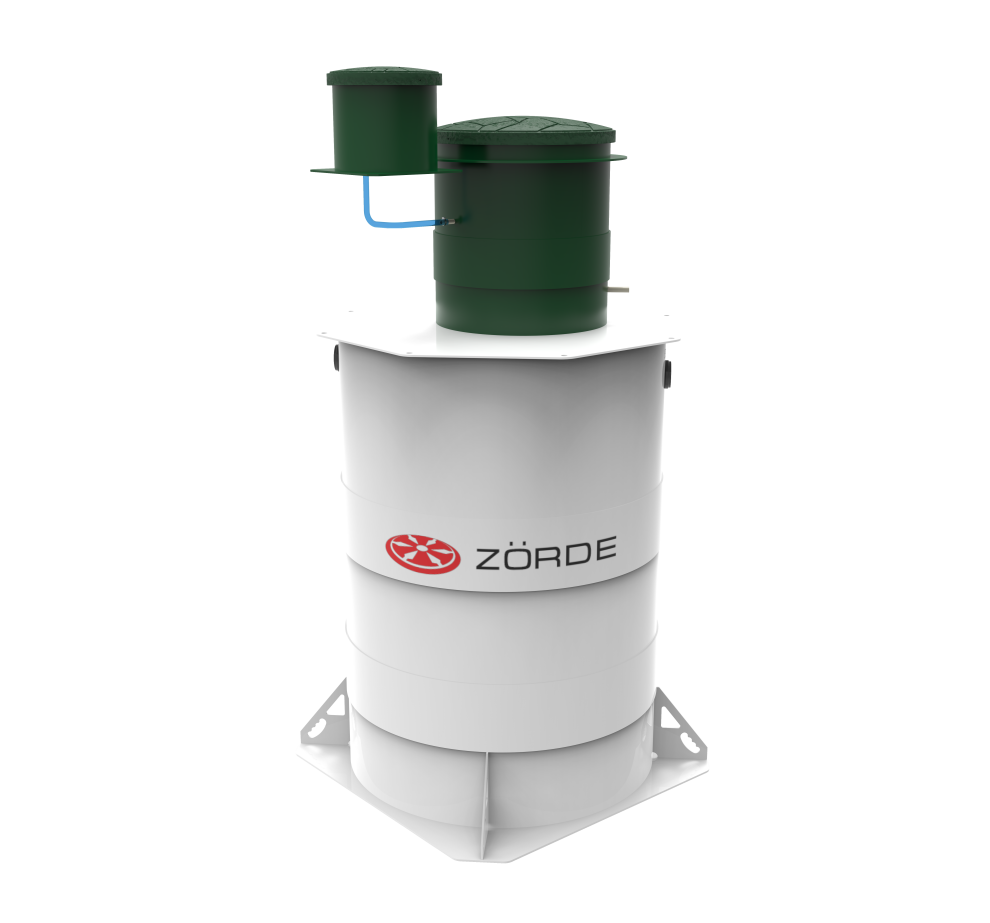Базово Zörde Rein 12 имеет комбинированное водоотведение. Насос для принудительного отвода в комплект не входит и приобретается отдельно, а площадка под него уже есть. При высоте корпуса 2581 мм модель не подходит для высокого УГВ как удобное и простое решение, и этот момент нужно учитывать ещё до выбора станции. Базовая глубина входа — 600 мм, максимальная — 1200 мм. Компрессор вынесен из корпуса, аварийная сигнализация уровня доступна как опция, дополнительного обеззараживания нет. Обслуживание — средней сложности.