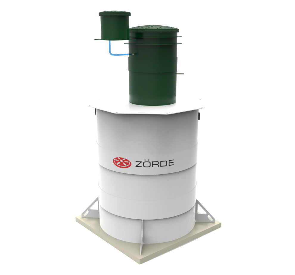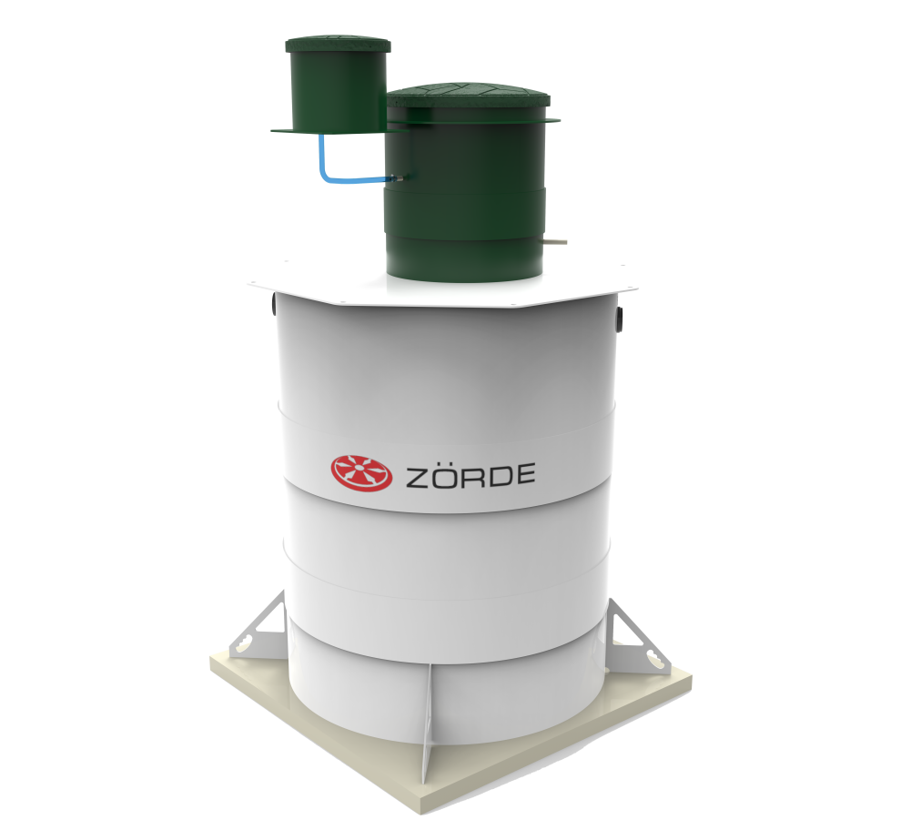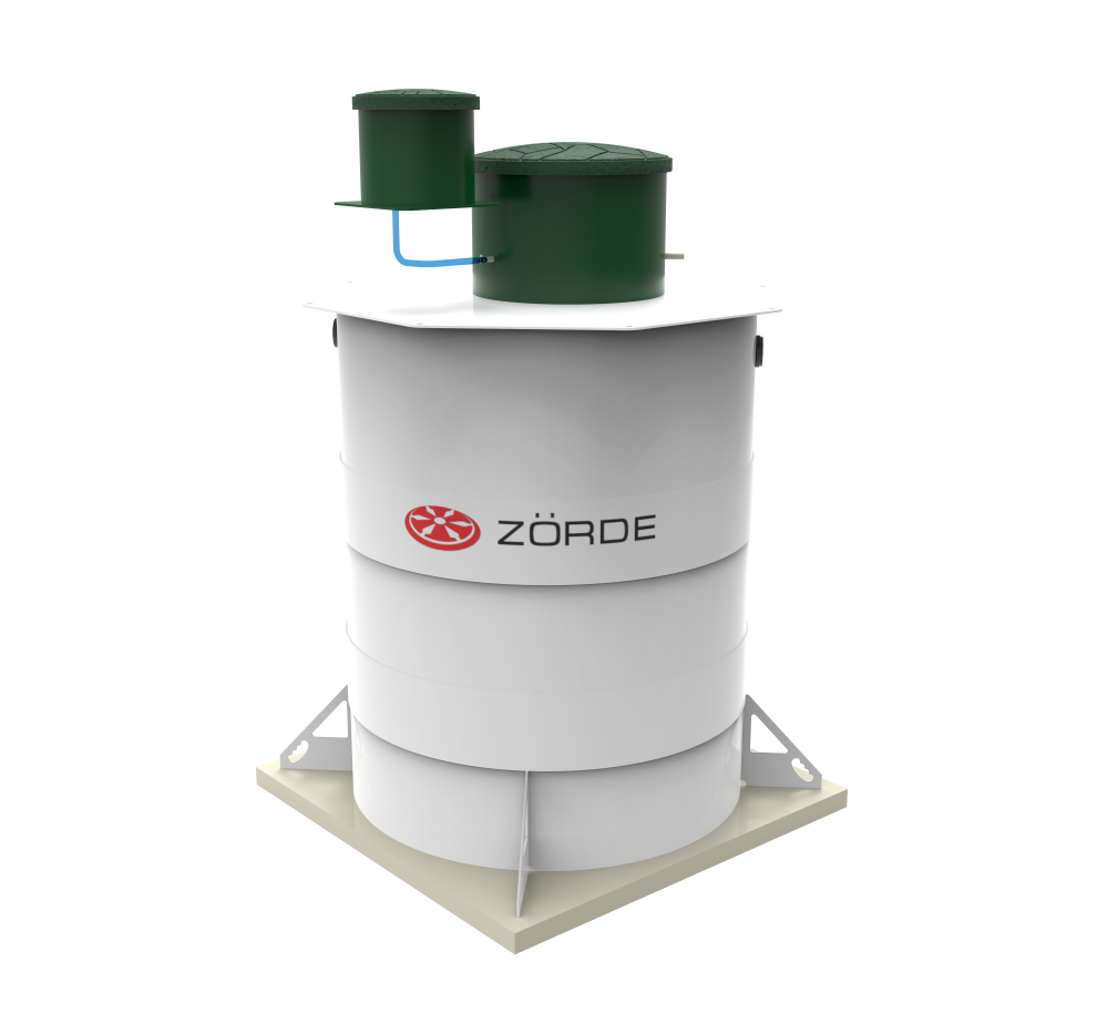 Базово Zörde Rein 15 имеет комбинированное водоотведение. Насос для принудительного отвода в комплект не входит и приобретается отдельно, при этом площадка под него уже предусмотрена. При высоте корпуса 2653 мм модель не подходит для высокого УГВ как удобное рабочее решение и требует очень внимательной оценки схемы монтажа. Базовая глубина входа — 600 мм, максимальная — 1200 мм. Компрессор вынесен из корпуса, аварийная сигнализация уровня предусмотрена как опция, дополнительных вариантов обеззараживания у линейки нет. Обслуживание — средней сложности.